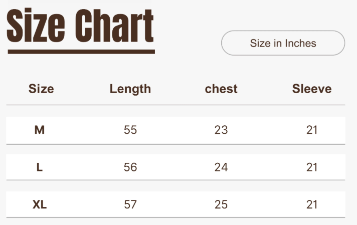 size chart attached in pictures